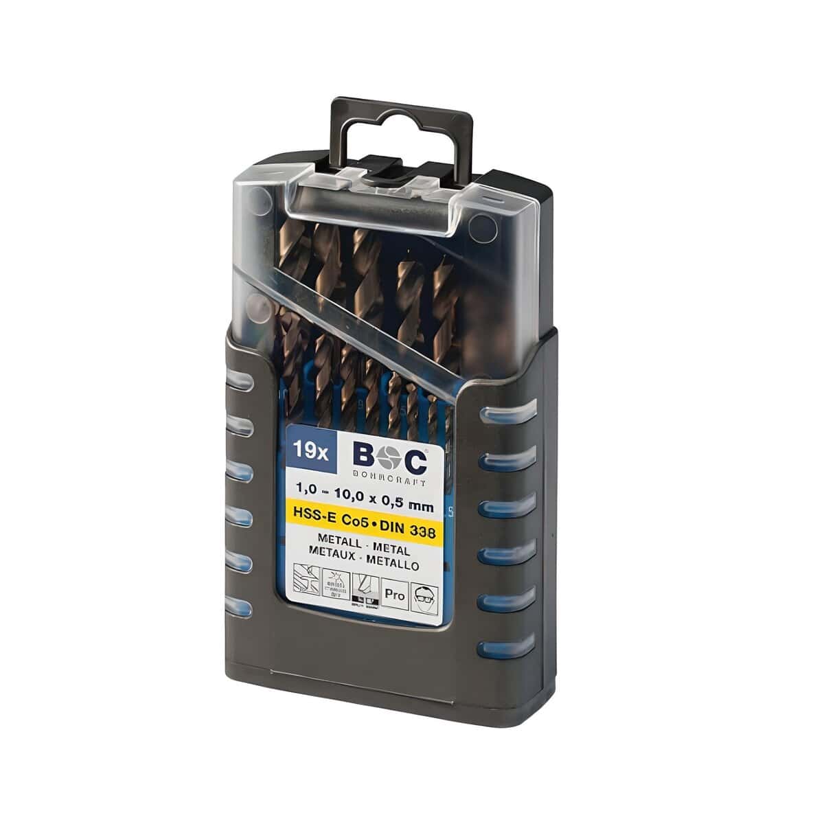 Trusa de burghie HSS-E DIN 338, Co 5%, rectificate, 1-10 mm, 19 piese, pentru găurire metale dure